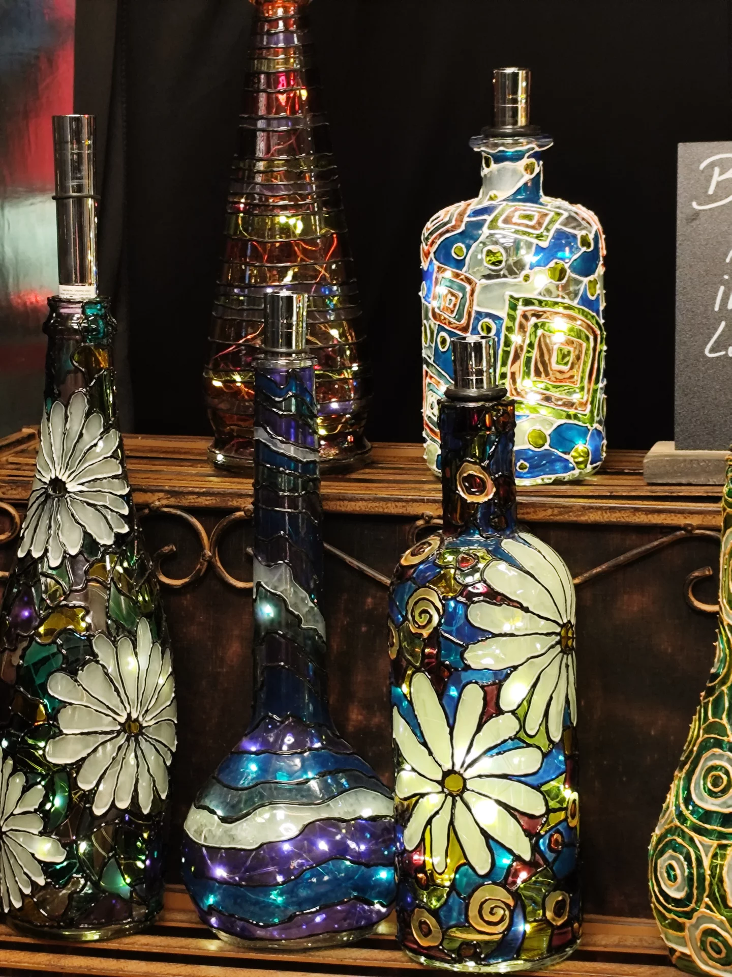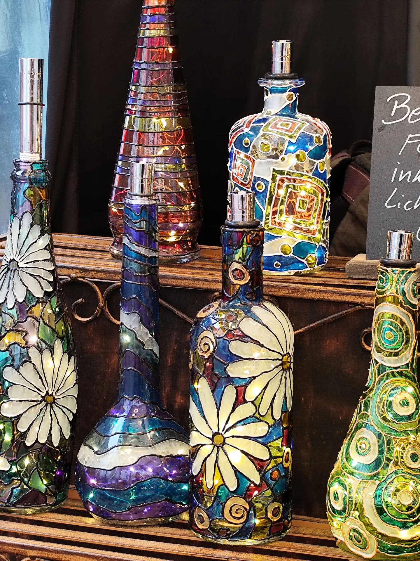 Bemalte Flaschen inklusive Lichterkette: 48€