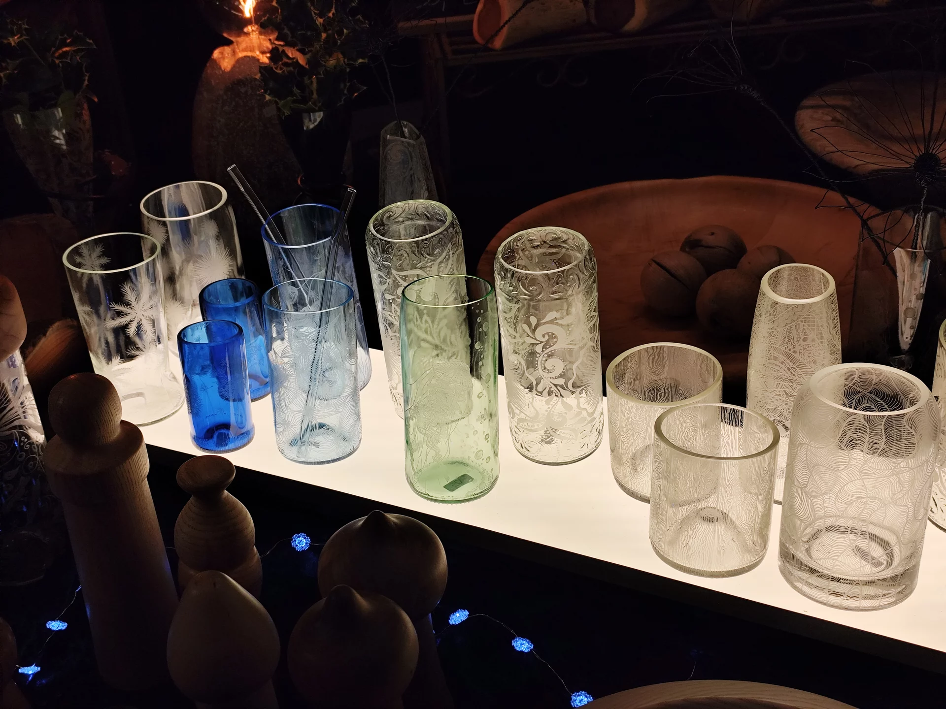 Gravierte Gläser: Meist ab 50€, mit kleinformatigen Ausnahmen